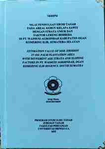 MAESA, MEIGI and Priatna, Satria Jaya (2025) NILAI PENDUGAAN EROSI TANAH PADA AREAL KEBUN KELAPA SAWIT DENGAN STRATA UMUR DAN FAKTOR LERENG BERBEDA DI PT. WAIMUSI AGROINDAH KABUPATEN OGAN KOMERING ILIR, SUMATERA SELATAN. Undergraduate thesis, Sriwijaya University.