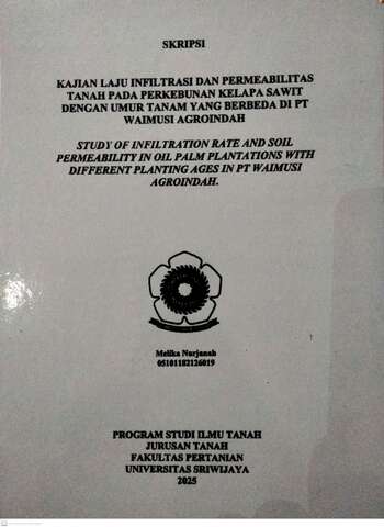 NURJANAH, MELIKA and Priatna, Satria Jaya (2025) KAJIAN LAJU INFILTRASI DAN PERMEABILITAS TANAH PADA PERKEBUNAN KELAPA SAWIT DENGAN UMUR TANAM YANG BERBEDA DI PT WAIMUSI AGROINDAH. Undergraduate thesis, Sriwijaya University.