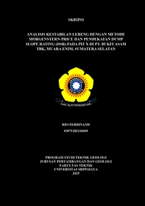 FERDINAND, RIO and Setiawan, Budhi (2025) ANALISIS KESTABILAN LERENG DENGAN METODE MORGENSTERN-PRICE DAN PENDEKATAN DUMP SLOPE RATING (DSR) PADA PIT X DI PT. BUKIT ASAM TBK, MUARA ENIM, SUMATERA SELATAN. Undergraduate thesis, Sriwijaya University.
