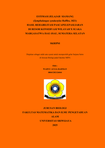 RAHMAN, WAHYU AULIA and Yustian, Indra and Winarti, Indah (2025) ESTIMASI JELAJAH SIAMANG (Symphalangus syndactylus Raffles, 1821) HASIL REHABILITASI PASCAPELEPASLIARAN DI RESOR KONSERVASI WILAYAH X SUAKA MARGASATWA ISAU-ISAU, SUMATERA SELATAN. Undergraduate thesis, Sriwijaya University.