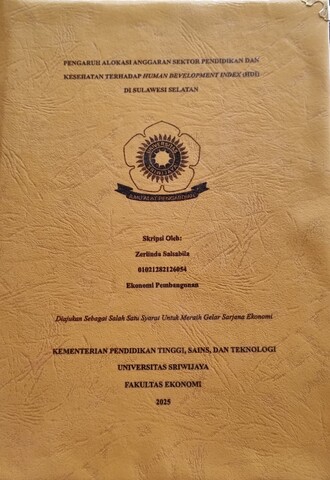 SALSABILA, ZERLINDA and Yulianita, Anna (2025) PENGARUH ALOKASI ANGGARAN SEKTOR PENDIDIKAN DAN KESEHATAN TERHADAP HUMAN DEVELOPMENT INDEX (HDI) DI SULAWESI SELATAN. Undergraduate thesis, Sriwijaya University.