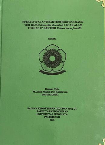 KURNIAWAN, MUHAMMAD ADAM WAHYU DWI and Yulianti, Rinda and Bellinda, Merryca (2025) EFEKTIVITAS ANTIBAKTERI EKSTRAK DAUN TEH HIJAU (Camellia sinensis l) PAGAR ALAM TERHADAP BAKTERI Enterococcus faecalis. Undergraduate thesis, Sriwijaya University.