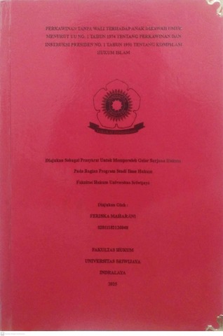 MAHARANI, FERISKA and Turatmiyah, Sri and Afrilia, Dian (2025) PERKAWINAN TANPA WALI TERHADAP ANAK DIBAWAH UMUR MENURUT UU NO. 1 TAHUN 1974 TENTANG PERKAWINAN DAN INSTRUKSI PRESIDEN NO. 1 TAHUN 1991 TENTANG KOMPILASI HUKUM ISLAM. Undergraduate thesis, Sriwijaya University.