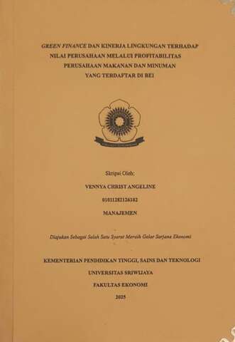 ANGELINE, VENNYA CHRIST and Malinda, Shelfi (2025) GREEN FINANCE DAN KINERJA LINGKUNGAN TERHADAP NILAI PERUSAHAAN MELALUI PROFITABILITAS PERUSAHAAN MAKANAN DAN MINUMAN YANG TERDAFTAR DI BEI. Undergraduate thesis, Sriwijaya University.
