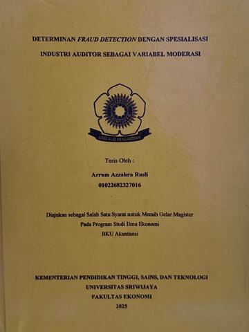 RUSLI, ARRUM AZZAHRA and Yusnaini, Yusnaini and Sukanto, Sukanto (2025) DETERMINAN FRAUD DETECTION DENGAN SPESIALISASI INDUSTRI AUDITOR SEBAGAI VARIABEL MODERASI. Undergraduate thesis, Sriwijaya University.