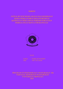 NANDINI, NABILAH and Novrikasari, Novrikasari (2025) INITIAL REVIEW KESELAMATAN DAN KESEHATAN KERJA PERKANTORAN DI KANTOR DINAS KESEHATAN SERTA DINAS PERINDUSTRIAN DAN PERDAGANGAN KOTA LUBUKLINGGAU. Undergraduate thesis, Sriwijaya University.