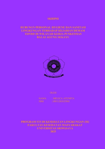 AYUNITA, MELICA and Budiastuti, Anggun (2025) HUBUNGAN PERSONAL HYGIENE DAN SANITASI LINGKUNGAN TERHADAP KEJADIAN DEMAM TIFOID DI WILAYAH KERJA PUSKESMAS BALAI AGUNG SEKAYU. Undergraduate thesis, Sriwijaya University.