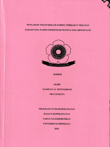 MUSTAQIMAH, HAMIDAH AL and Ningsih, Nurna and Effendi, Zulian (2025) PENGARUH TERAPI BEKAM KERING TERHADAP TEKANAN DARAH PADA PASIEN HIPERTENSI WANITA USIA MENOPAUSE. Undergraduate thesis, Sriwijaya University.
