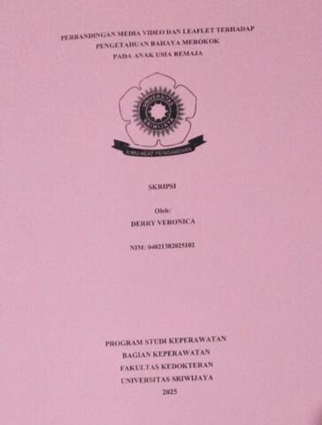 VERONICA, DERRY and Latifin, Khoirul and Jaji, Jaji (2025) PERBANDINGAN MEDIA VIDEO DAN LEAFLET TERHADAP PENGETAHUAN BAHAYA MEROKOK PADA ANAK USIA REMAJA. Undergraduate thesis, Sriwijaya University.