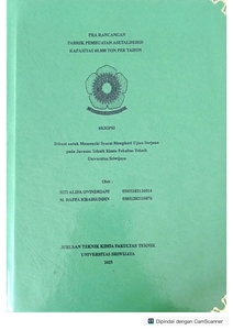OVINDRIANI, SITI ALIFA and KHAIRUDDIN, MUHAMMAD DAFFA and Sari, Tuti Indah (2025) PRA RANCANGAN PABRIK PEMBUATAN ASETALDEHID KAPASITAS 60.000 TON/TAHUN. Undergraduate thesis, Sriwijaya University.