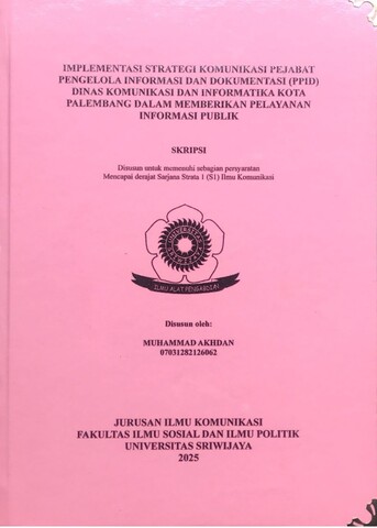 AKHDAN, MUHAMMAD and Thamrin, Muhammad Husni and Karmila, Leti (2025) IMPLEMENTASI STRATEGI KOMUNIKASI PEJABAT PENGELOLA INFORMASI DAN DOKUMENTASI (PPID) DINAS KOMUNIKASI DAN INFORMATIKA KOTA PALEMBANG DALAM MEMBERIKAN PELAYANAN INFORMASI PUBLIK. Undergraduate thesis, Sriwijaya University.