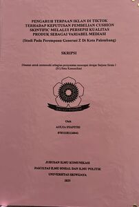 SYAFITRI, AULYA and Thamrin, Muhammad Husni and Priambodo, Galih (2025) PENGARUH TERPAAN IKLAN DI TIKTOK TERHADAP KEPUTUSAN PEMBELIAN CUSHION SKINTIFIC MELALUI PERSEPSI KUALITAS PRODUK SEBAGAI VARIABEL MEDIASI (STUDI PADA PEREMPUAN GENERASI Z DI KOTA PALEMBANG). Undergraduate thesis, Sriwijaya University.