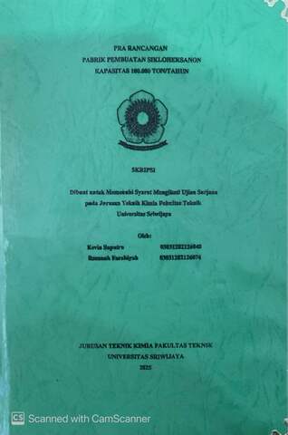 SAPUTRA, KEVIN and FARAHIYAH, ROZANAH and Komariah, Leily Nurul (2025) PRA RANCANGAN PABRIK PEMBUATAN SIKLOHEKSANON KAPASITAS 100.000 TON/TAHUN. Undergraduate thesis, Sriwijaya University.