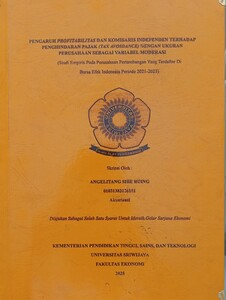 RUING, ANGELITANG SIBE and Patmawati, Patmawati (2025) PENGARUH PROFITABILITAS DAN KOMISARIS INDEPENDEN TERHADAP PENGHINDARAN PAJAK (TAX AVOIDANCE) DENGAN UKURAN PERUSAHAAN SEBAGAI VARIABEL MODERASI (STUDI EMPIRIS PADA PERUSAHAAN PERTAMBANGAN YANG TERDAFTAR DI BURSA EFEK INDONESIA PERIODE 2021-2023). Undergraduate thesis, Sriwijaya University.