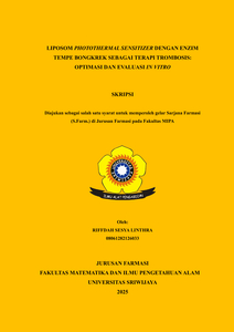 LINTHRA, RIFFDAH SESYA and Fithri, Najma Annuria and Mulyani, Laida Neti (2025) LIPOSOM PHOTOTHERMAL SENSITIZER DENGAN ENZIM TEMPE BONGKREK SEBAGAI TERAPI TROMBOSIS: OPTIMASI DAN EVALUASI IN VITRO. Undergraduate thesis, Sriwijaya University.