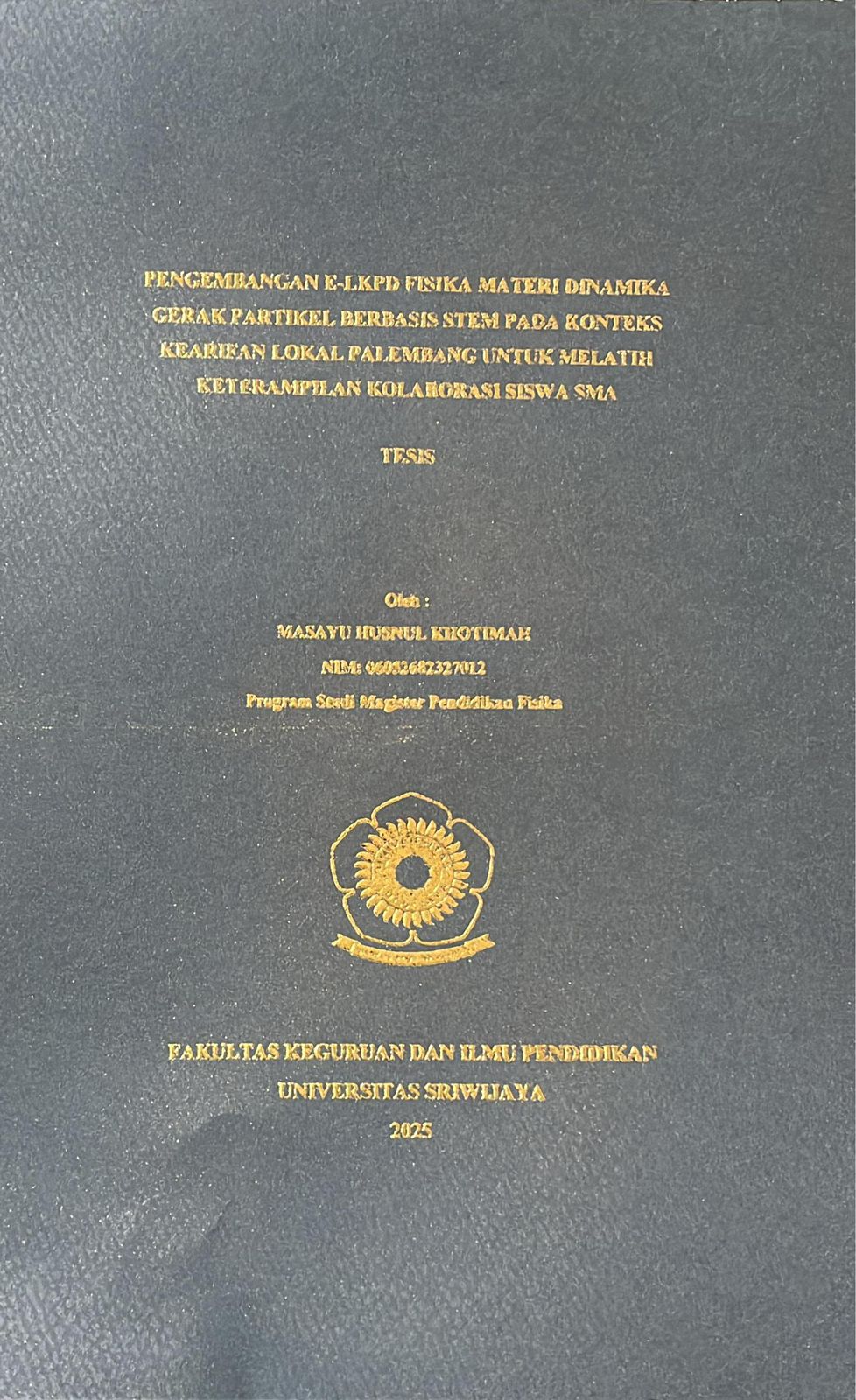 KHOTIMAH, MASAYU HUSNUL and Wiyono, Ketang and Sriyanti, Ida (2025) PENGEMBANGAN E-LKPD FISIKA MATERI DINAMIKA GERAK PARTIKEL BERBASIS STEM PADA KONTEKS KEARIFAN LOKAL PALEMBANG UNTUK MELATIH KETERAMPILAN KOLABORASI SISWA SMA. Masters thesis, Sriwijaya University.