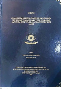 RAZAQI, FERINA YASYFA and Hasjim, Machmud and Yusuf, Maulana (2025) ANALISIS MANAJEMEN STOCKPILE DALAM UPAYA MENCEGAH TERJADINYA POTENSI SWABAKAR BATUBARA DI PT BUMI BARA MAKMUR MANDIRI JAMBI. Undergraduate thesis, Sriwijaya University.