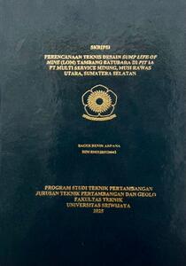 ARDANA, BAGUS RENDI and Bochori, Bochori and Gobel, Alieftiyani Paramita (2025) PERENCANAAN TEKNIS DESAIN SUMP LIFE OF MINE (LOM) TAMBANG BATUBARA DI PIT 1A PT MULTI SERVICE MINING, MUSI RAWAS UTARA, SUMATERA SELATAN. Undergraduate thesis, Sriwijaya University.