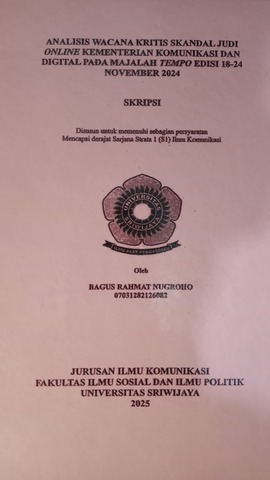 NUGROHO, BAGUS RAHMAT and Andarini, Rindang Senja and Pratiwi, Feny Selly (2025) ANALISIS WACANA KRITIS SKANDAL JUDI ONLINE KEMENTERIAN KOMUNIKASI DAN DIGITAL PADA MAJALAH TEMPO EDISI 18-24 NOVEMBER 2024. Undergraduate thesis, Sriwijaya University.