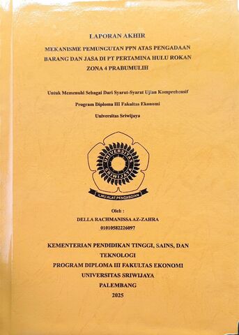 AZ-ZAHRA, DELLA RACHMANISSA and Patmawati, Patmawati (2025) MEKANISME PEMUNGUTAN PPN ATAS PENGADAAN BARANG DAN JASA DI PT PERTAMINA HULU ROKAN ZONA 4 PRABUMULIH. Diploma thesis, Sriwijaya University.
