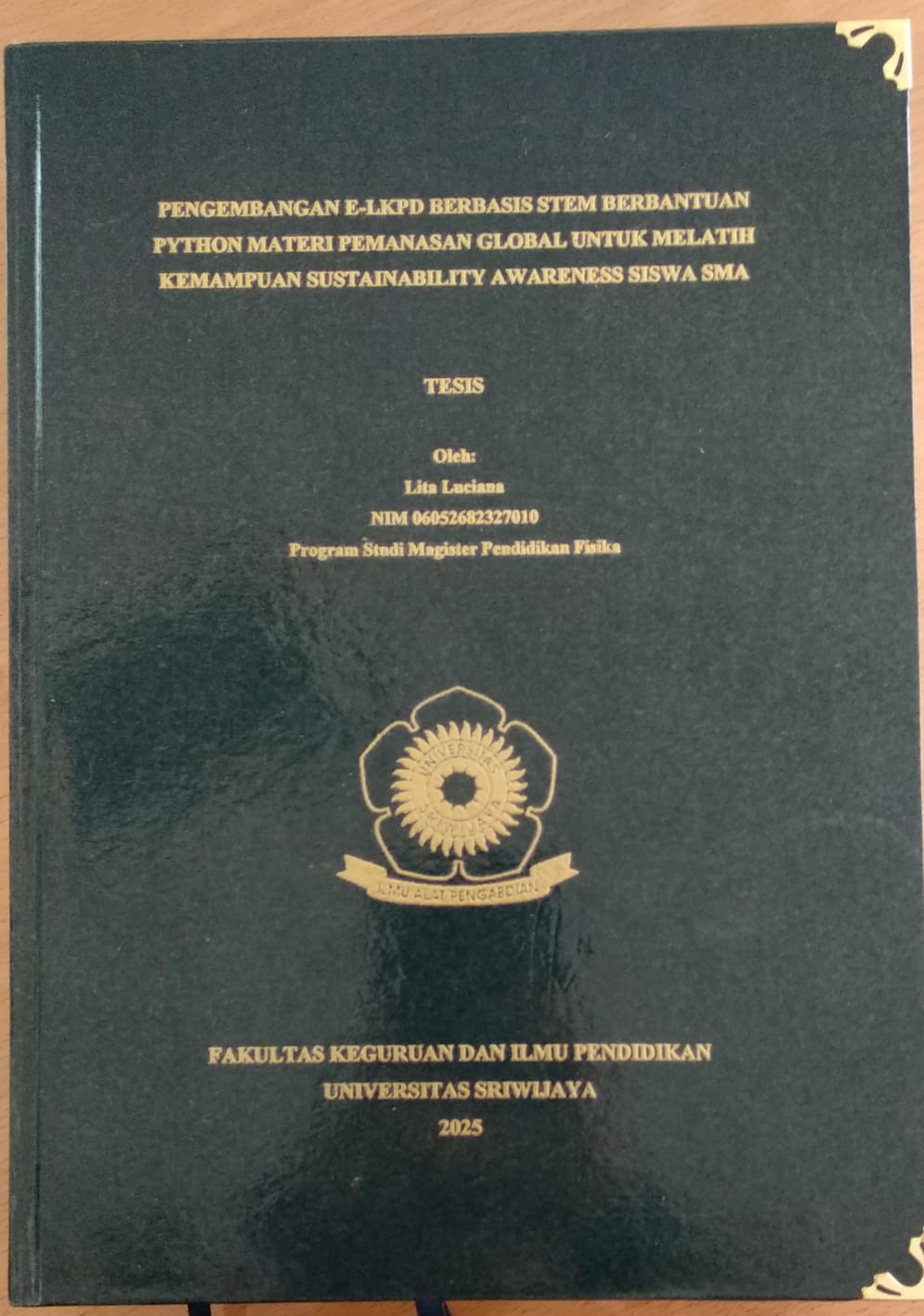 LUCIANA, LITA and Marlina, Leni and Fathurohman, Apit (2025) PENGEMBANGAN E-LKPD BERBASIS STEM BERBANTUAN PYTHON MATERI PEMANASAN GLOBAL UNTUK MELATIH KEMAMPUAN SUSTAINABILITY AWARENESS SISWA SMA. Masters thesis, Universitas Sriwijaya.