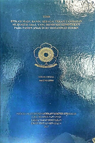 AMALIA, SARAH and Sari, Dian Puspita and Ayu, Dewi Rosariah and Karmila, Ariesti (2025) EFIKASI MADU RANDU SEBAGAI TERAPI TAMBAHAN MUKOSITIS ORAL YANG DIINDUKSI KEMOTERAPI PADA PASIEN ANAK DI RS MOHAMMAD HOESIN. Undergraduate thesis, Sriwijaya University.