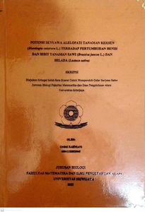 RAHMANI, UMMI and Verawaty, Marieska (2025) POTENSI SENYAWA ALELOPATI TANAMAN KERSEN (Muntingia calabura L.) TERHADAP PERTUMBUHAN BENIH DAN BIBIT TANAMAN SAWI (Brassica juncea L.) DAN SELADA (Lactuca sativa). Undergraduate thesis, Sriwijaya University.