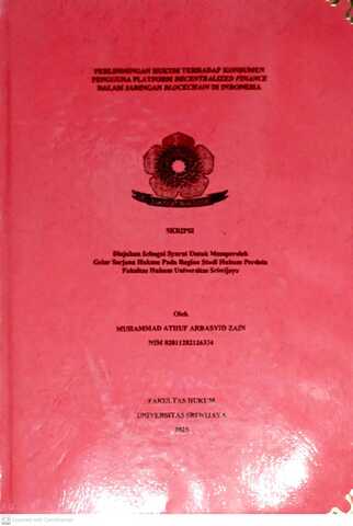 ZAIN, MUHAMMAD ATHUF ARRASYID and Handayani, Sri and Nugraha, Muslim (2025) PERLINDUNGAN HUKUM TERHADAP KONSUMEN PENGGUNA PLATFORM DECENTRALIZED FINANCE DALAM JARINGAN BLOCKCHAIN DI INDONESIA. Undergraduate thesis, Sriwijaya University.
