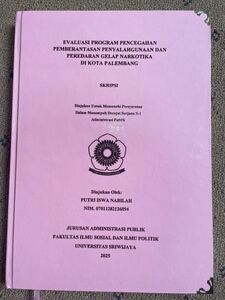 NABILAH, PUTRI ISWA and Khairunnas, Khairunnas (2025) EVALUASI PROGRAM PENCEGAHAN PEMBERANTASAN PENYALAHGUNAAN DAN PEREDARAN GELAP NARKOTIKA DI KOTA PALEMBANG. Undergraduate thesis, Sriwijaya University.