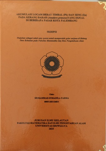 FARMA, MUHAMMAD JUMADILA and Wike, Ayu Eka Putri and Diansyah, Gusti (2025) AKUMULASI LOGAM BERAT TIMBAL (Pb) DAN SENG (Zn) PADA KERANG DARAH (Anadara granosa)YANG DIJUAL DI BEBERAPA PASAR KOTA PALEMBANG. Undergraduate thesis, Sriwijaya University.