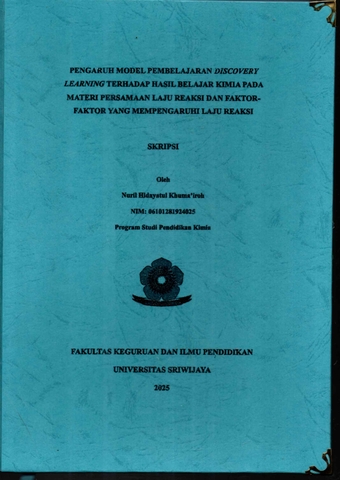 KHUMA'IROH, NURIL HIDAYATUL and Edi, Rodi (2025) PENGARUH MODEL PEMBELAJARAN DISCOVERY LEARNING TERHADAP HASIL BELAJAR KIMIA PADA MATERI PERSAMAAN LAKU REAKSI DAN FAKTOR-FAKTOR YANG MEMPENGARUHI LAJU REAKSI. Undergraduate thesis, Sriwijaya University.