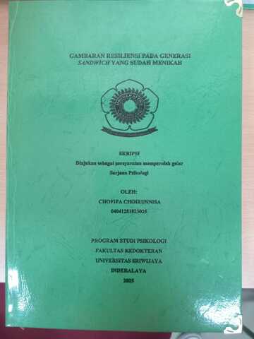 CHOIRUNNISA, CHOFIFA and Tarigan, Angeline Hosana Zefany (2025) GAMBARAN RESILIENSI PADA GENERASI SANDWICH YANG SUDAH MENIKAH. Undergraduate thesis, Sriwijaya University.
