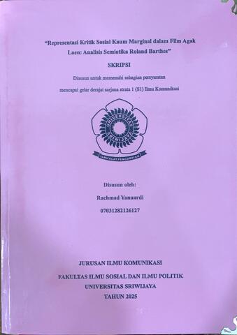 YANUARDI, RACHMAD and Bafadhal, Oemar Madri and Yogsunandar, Harry (2025) REPRESENTASI KRITIK SOSIAL KAUM MARGINAL DALAM FILM AGAK LAEN: ANALISIS SEMIOTIKA ROLAND BARTHES. Undergraduate thesis, Sriwijaya University.