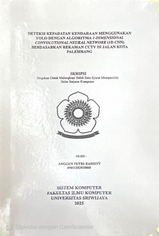 RADISTY, ANGGUN PUTRI and Sukemi, Sukemi and Oklilas, Ahmad Fali (2025) DETEKSI KEPADATAN KENDARAAN MENGGUNAKAN YOLO DENGAN ALGORITMA 1-DIMENSIONAL CONVOLUTIONAL NEURAL NETWORK (1D CNN) BERDASARKAN REKAMAN CCTV DI JALAN KOTA PALEMBANG. Undergraduate thesis, Sriwijaya University.