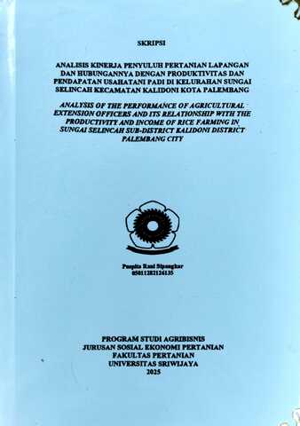 SIPANGKAR, PUSPITA RANI and Yunita, Yunita (2025) Analisis Kinerja Penyuluh Pertanian Lapangan dan Hubungannya dengan Produktivitas dan Pendapatan Usahatani Padi di Kelurahan Sungai Selincah Kecamatan Kalidoni Kota Palembang. Undergraduate thesis, Sriwijaya University.