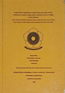 ADHYAKSA, RIZKI MEIDIRA and Soediro, Achmad (2025) PENGARUH THIN CAPITALIZATION, TRANSFER PRICING DAN CAPITAL INTENSITY TERHADAP TAX AVOIDANCE DENGAN ISLAMIC CORPORATE GOVERNANCE SEBAGAI VARIABEL MODERASI “STUDI EMPIRIS PERUSAHAAN MANUFAKTUR SEKTOR INDUSTRI BARANG KONSUMSI PRIMER YANG TERDAFTAR DI INDEKS SAHAM SYARIAH INDONESIA PADA TAHUN 2020-2024”. Undergraduate thesis, Sriwijaya University.