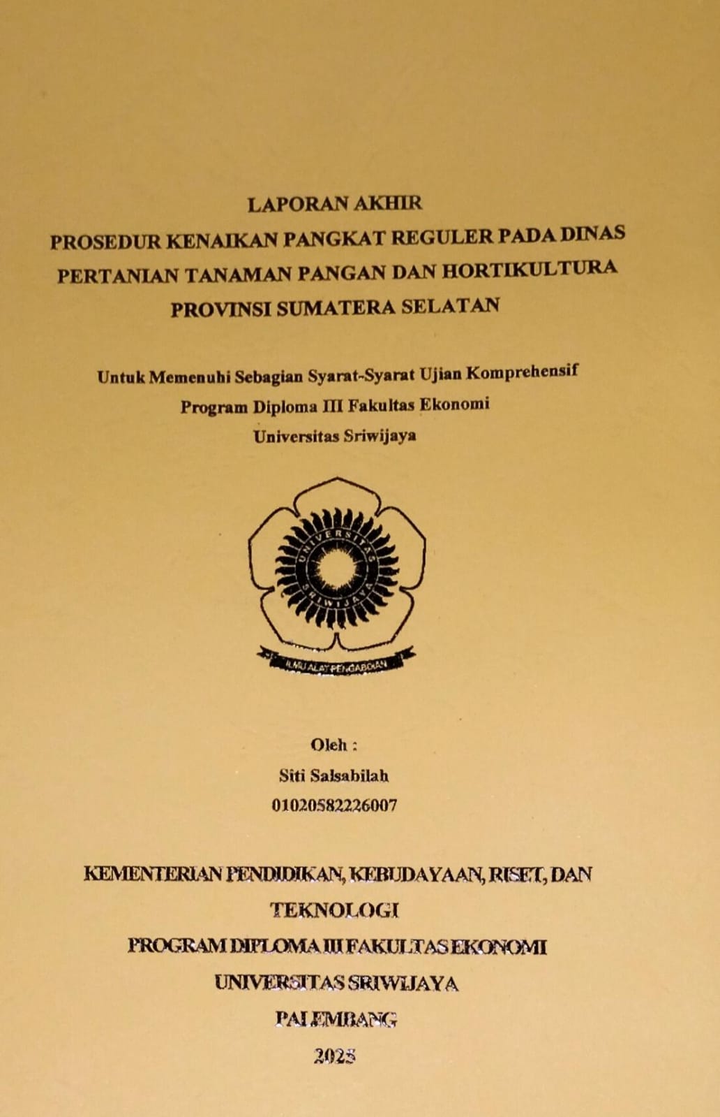 SALSABILAH, SITI and Nofiawaty, Nofiawaty (2025) PROSEDUR KENAIKAN PANGKAT REGULER PADA DINAS PERTANIAN TANAMAN PANGAN DAN HORTIKULTURA PROVINSI SUMATERA SELATAN. Diploma thesis, Sriwijaya University.
