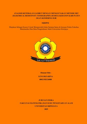 OKTARINA, LENI and Virgo, Frinsyah and Sutopo, Sutopo (2025) ANALISIS KETEBALAN GAMBUT DENGAN MENGGUNAKAN METODE ERT (ELEKTRICAL RESISTIVITY TOMOGRAPHY) DI DESA KEDATON KABUPATEN OGAN KOMERING ILIR. Undergraduate thesis, Sriwijaya University.