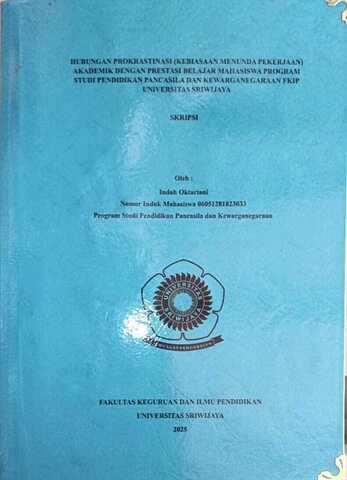OKTARIANI, INDAH and Kurnisar, Kurnisar (2025) HUBUNGAN PROKRASTINASI (KEBIASAAN MENUNDA PEKERJAAN) AKADEMIK DENGAN PRESTASI BELAJAR MAHASISWA PROGRAM STUDI PENDIDIKAN PANCASILA DAN KEWARGANEGARAAN FKIP UNIVERSITAS SRIWIJAYA. Undergraduate thesis, Sriwijaya University.