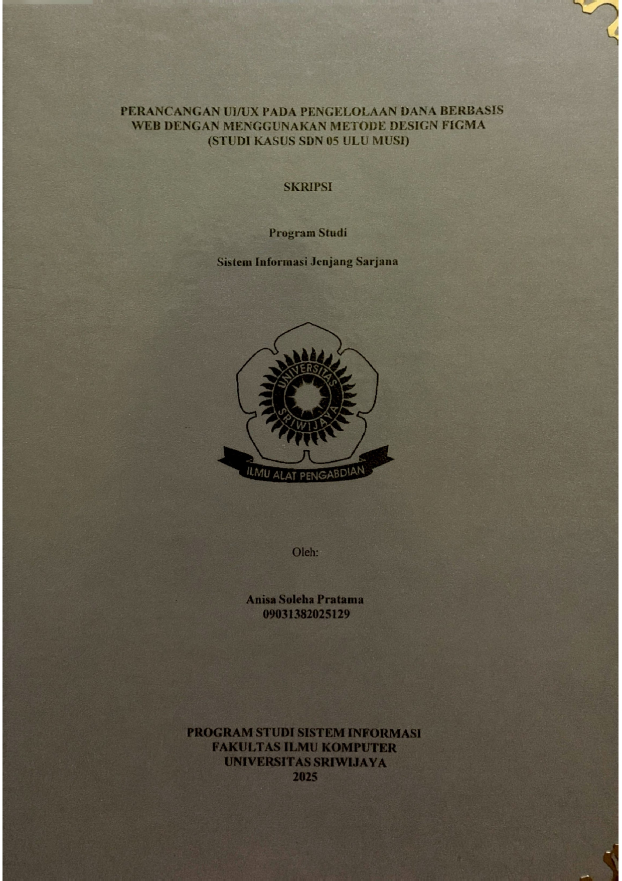 PRATAMA, ANISA SOLEHA and Ibrahim, Ali (2025) PERANCANGAN UI/UX PADA PENGELOLAAN DANA BERBASIS WEB DENGAN MENGGUNAKAN METODE DESIGN FIGMA (STUDI KASUS SDN 05 ULU MUSI). Undergraduate thesis, Sriwijaya University.
