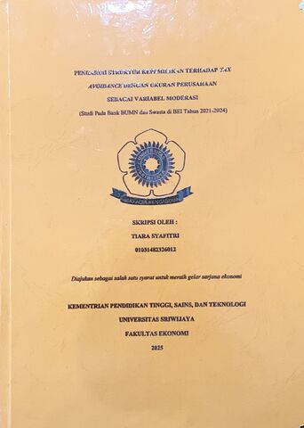 SYAFITRI, TIARA and Rahmawati, Meita (2025) PENGARUH STRUKTUR KEPEMILIKAN TERHADAP TAX AVOIDANCE DENGAN UKURAN PERUSAHAAN SEBAGAI VARIABEL MODERASI. Undergraduate thesis, Sriwijaya University.