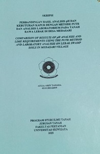 TAMARA, AULIA ARSY and Bakri, Bakri (2025) PERBANDINGAN HASIL ANALISIS PH DAN KEBUTUHAN KAPUR DENGAN METODE PUTR DAN ANALISIS LABORATORIUM PADA TANAH RAWA LEBAK DI DESA MEDASARI. Undergraduate thesis, Sriwijaya University.