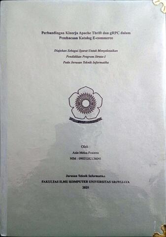 PRATAMA, AZIE MELZA and Marieska, Mastura Diana (2025) PERBANDINGAN KINERJA APACHE THRIFT DAN GRPC DALAM PEMBACAAN KATALOG E-COMMERCE. Undergraduate thesis, Sriwijaya University.
