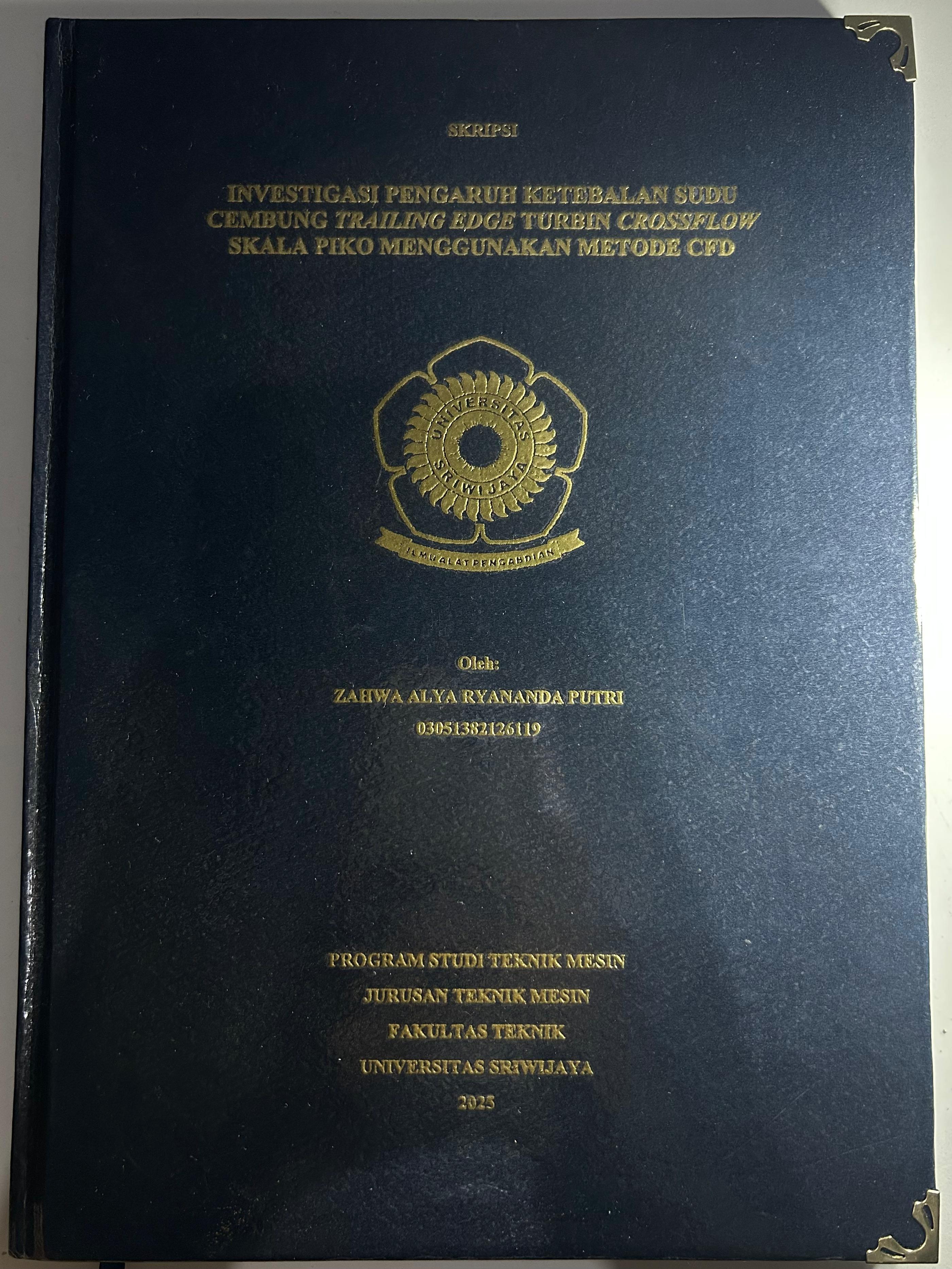 PUTRI, ZAHWA ALYA RYANANDA and Adanta, Dendy (2025) INVESTIGASI PENGARUH KETEBALAN SUDU CEMBUNG TRAILING EDGE TURBIN CROSSFLOW SKALA PIKO MENGGUNAKAN METODE CFD. Undergraduate thesis, Sriwijaya University.