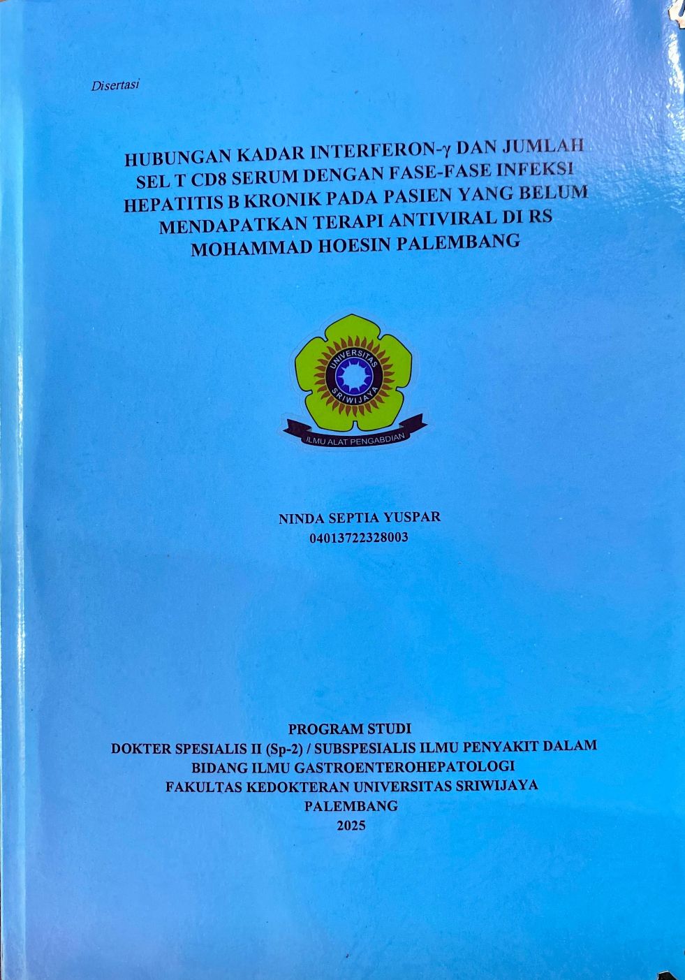 YUSPAR, NINDA SEPTIA and Suyata, Suyata and Legiran, Legiran (2025) HUBUNGAN KADAR INTERFERON-γ DAN JUMLAH SEL T CD8 SERUM DENGAN FASE-FASE INFEKSI HEPATITIS B KRONIK PADA PASIEN YANG BELUM MENDAPATKAN TERAPI ANTIVIRAL DI RS MOHAMMAD HOESIN PALEMBANG. Undergraduate thesis, Sriwijaya University.