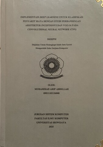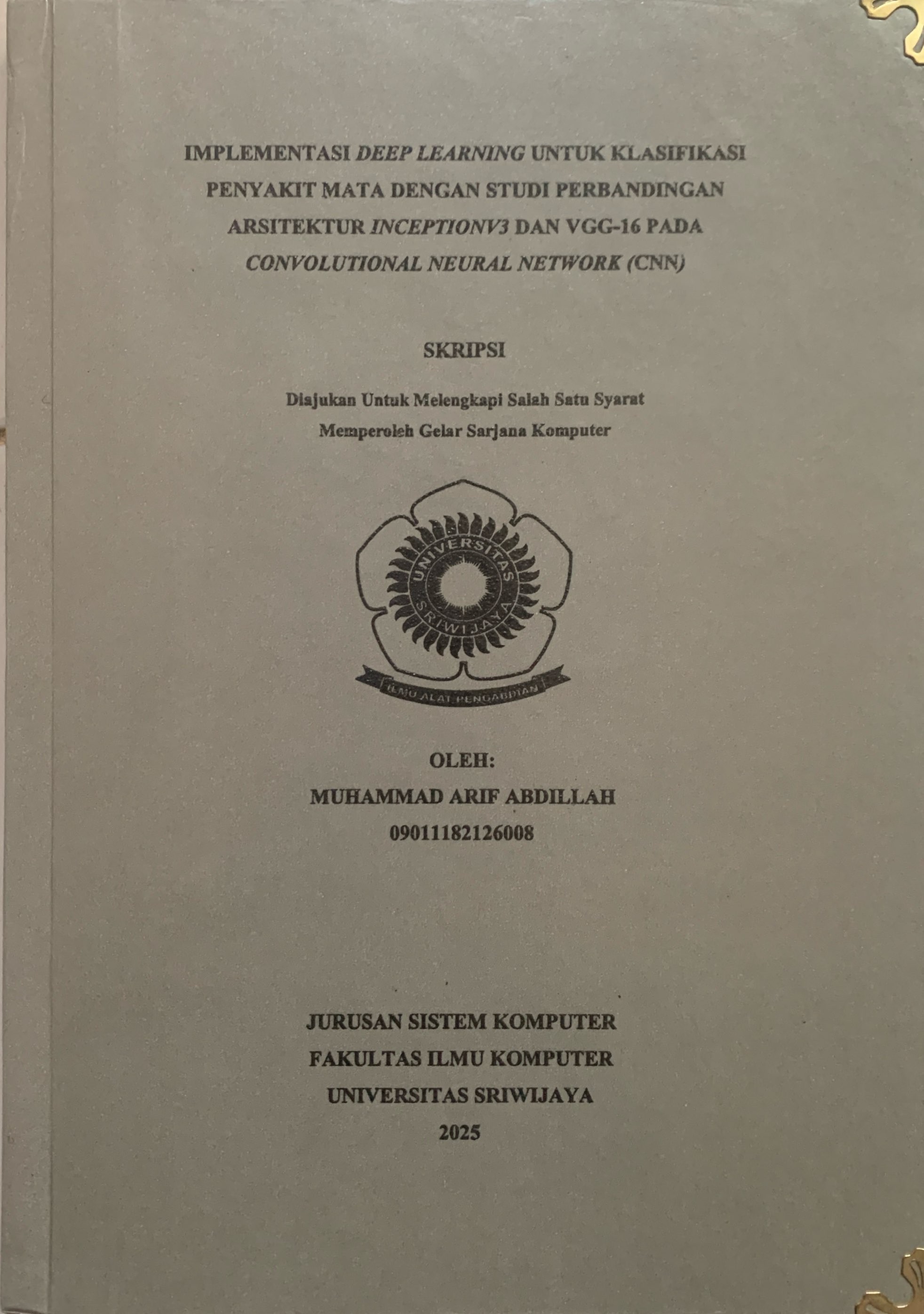 ABDILLAH, MUHAMMAD ARIF and Sutarno, Sutarno (2025) IMPLEMENTASI DEEP LEARNING UNTUK KLASIFIKASI PENYAKIT MATA DENGAN STUDI PERBANDINGAN ARSITEKTUR INCEPTIONV3 DAN VGG-16 PADA CONVOLUTIONAL NEURAL NETWORK (CNN). Undergraduate thesis, Sriwijaya University.