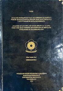 SARI, DIAN INDAH and Wildayana, Elisa and Yunita, Yunita (2025) ANALISIS PENDAPATAN DAN KETERSEDIAAN PANGAN POKOK RUMAH TANGGA PETANI PADI PADA TIPOLOGI LAHAN BASAH DI KOTA PALEMBANG. Masters thesis, Sriwijaya University.