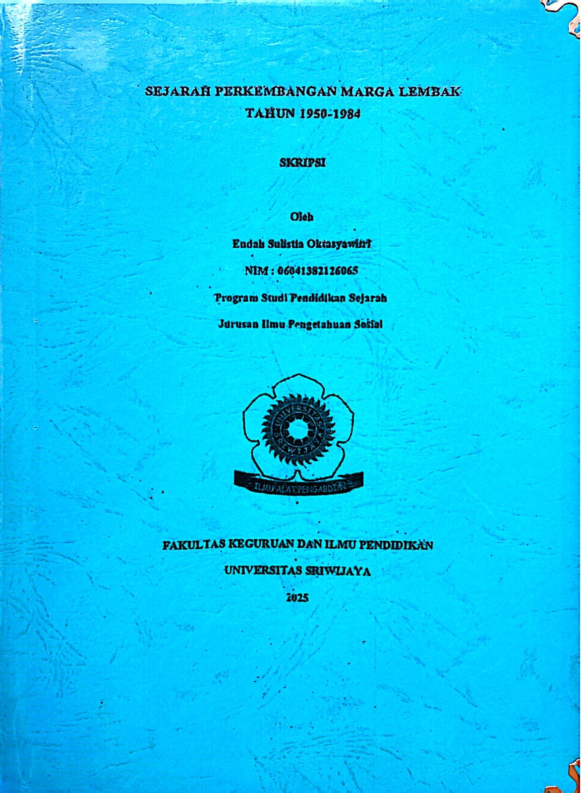OKTASYAWITRI, ENDAH SULISTIA and Dedi Irwanto, Irwanto (2025) SEJARAH PERKEMBANGAN MARGA LEMBAK TAHUN 1950-1984. Undergraduate thesis, Sriwijaya University.