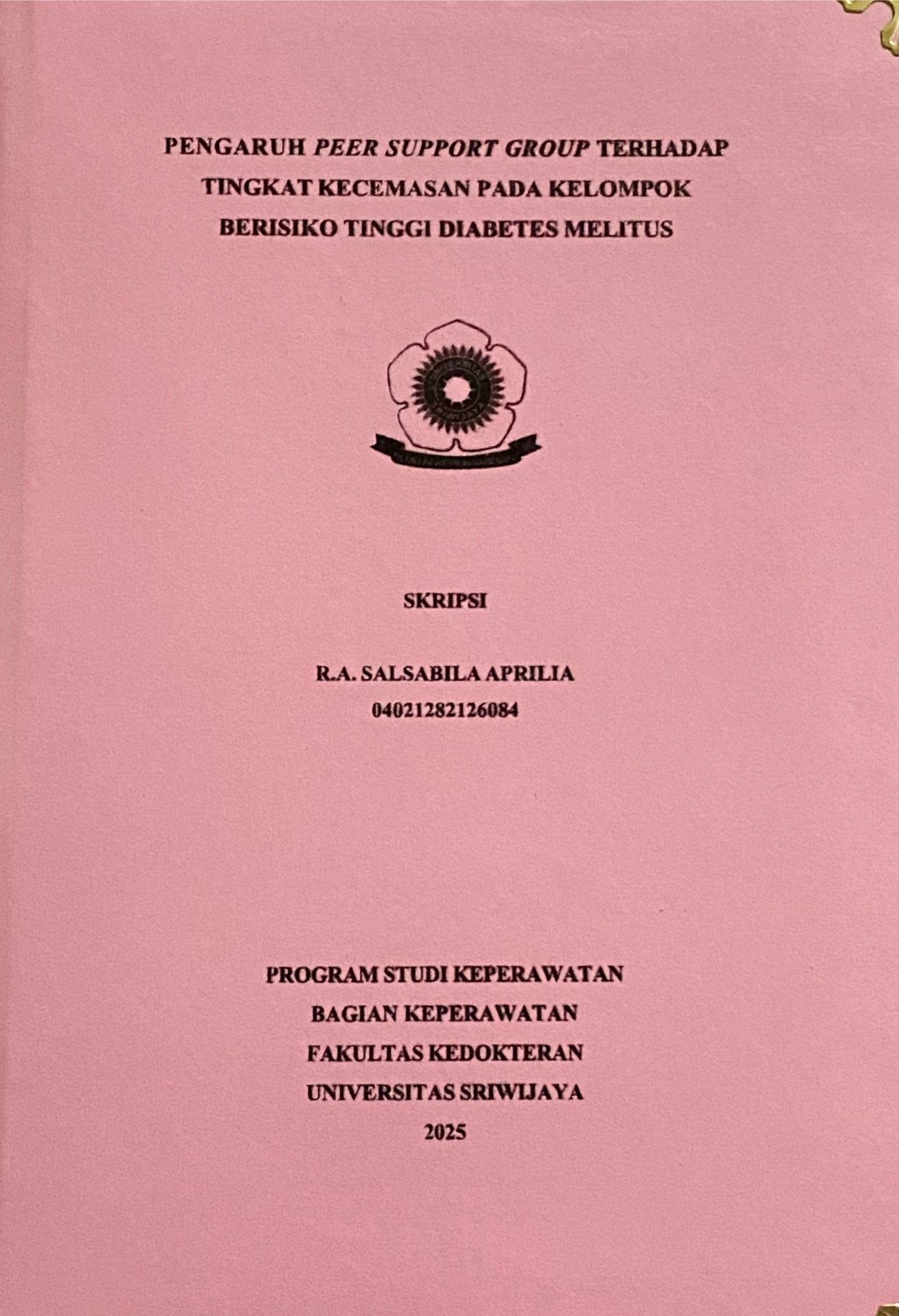 APRILIA, R.A. SALSABILA and Rahmawati, Fuji and Fitriani, Sukmah (2025) PENGARUH PEER SUPPORT GROUP TERHADAP TINGKAT KECEMASAN PADA KELOMPOK BERISIKO TINGGI DIABETES MELITUS. Undergraduate thesis, Sriwijaya University.