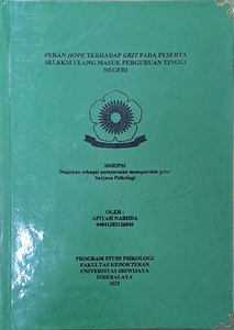 NABIIHA, AFIYAH and Nugroho, Indra Prapto and Juniarly, Amalia (2025) PERAN HOPE TERHADAP GRIT PADA PESERTA SELEKSI ULANG MASUK PERGURUAN TINGGI NEGERI. Undergraduate thesis, Sriwijaya University.